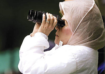ベストショット 彼女はゴルフを見ているのではなくて、上空の飛行機の宣伝をみているらしい。。。