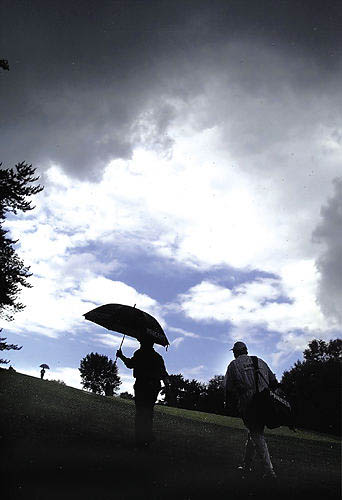 3ラウンド開始の前に 17番目のフェアウェーの水を 取り除いています。でも、なんだか 楽しそうね・・・。毎年こんな光景を 目にします。インディアンの涙?(笑) |